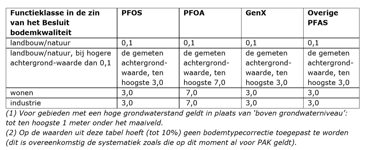 In handelingskader PFAS worden voorlopige toepassingsnormen geïntroduceerd voor hergebruik van PFAS-houdende grond en baggerspecie. Deze normen zijn gebaseerd op het advies van RIVM over risicogrenzen voor PFOS, PFOA en GenX. Voor veel projecten betekent dit dat per direct PFAS-metingen moeten worden meegenomen bij het onderzoek naar de kwaliteit van grond of baggerspecie en/of toe te passen landbodem of waterbodem.