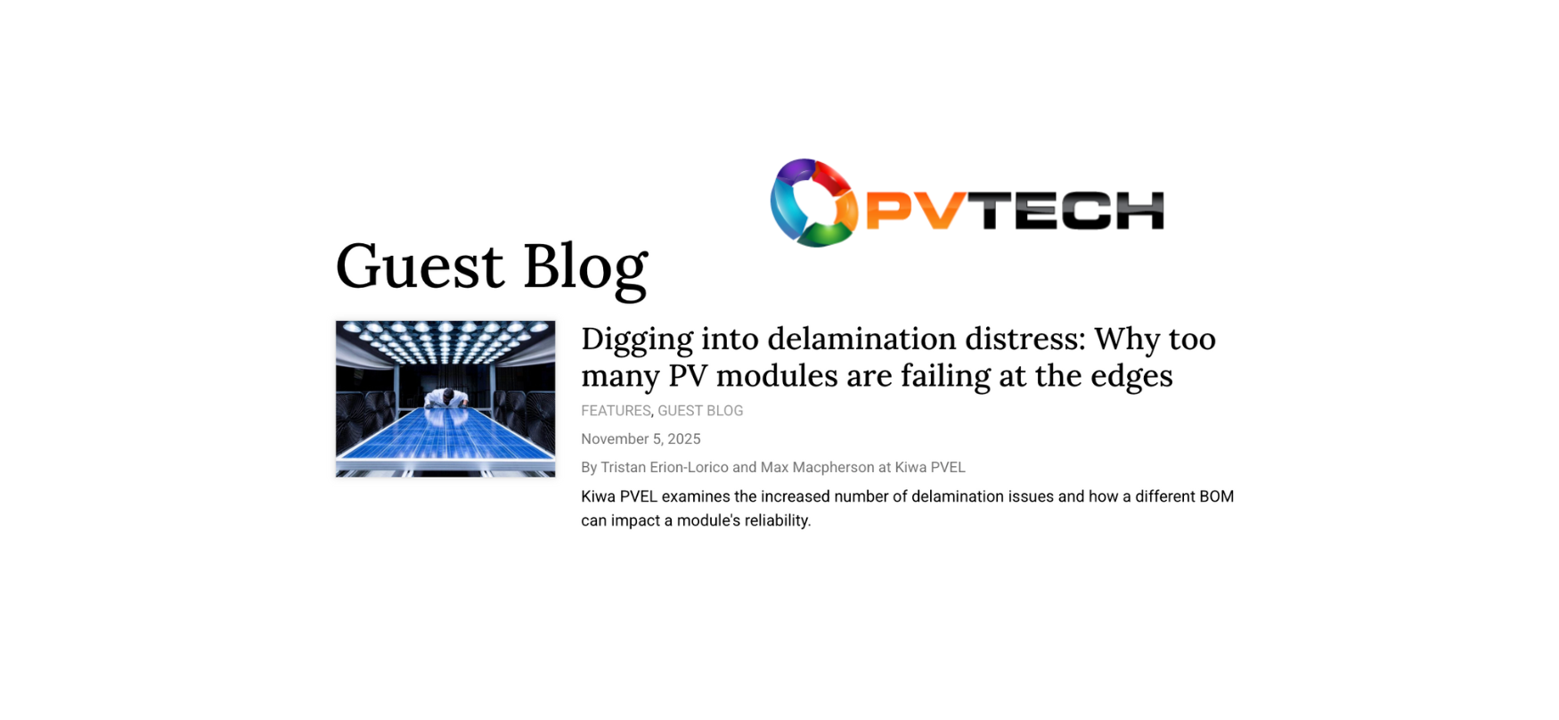 Members of the Kiwa PVEL team regularly attend in-person events throughout the globe and present or host webinars. Additionally, Kiwa PVEL is often covered in the solar industry’s leading media outlets. See more about our upcoming and past events and press coverage below.